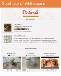 - Let there be white space. Design with intentional spacing to allow the eye to rest and to make CTAs and other links more visible.